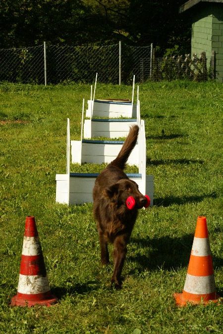 Das Training beinhaltet vor allem viel Spaß mit dem Hund, der Weg zum Ziel, das Finden des eigenen Apportels, ist spannend für die Beteiligten und der Erfolg stellt sich schnell ein – ohne Druck, ohne Zwang wird gerne auch mit Klicker gearbeitet. Die Übungseinheiten basieren auf 3 getrennten Basics: Apporteltraining, Sprungtechnik und Nasensuche, erst alles im Einzelnen, später zusammengefügt.